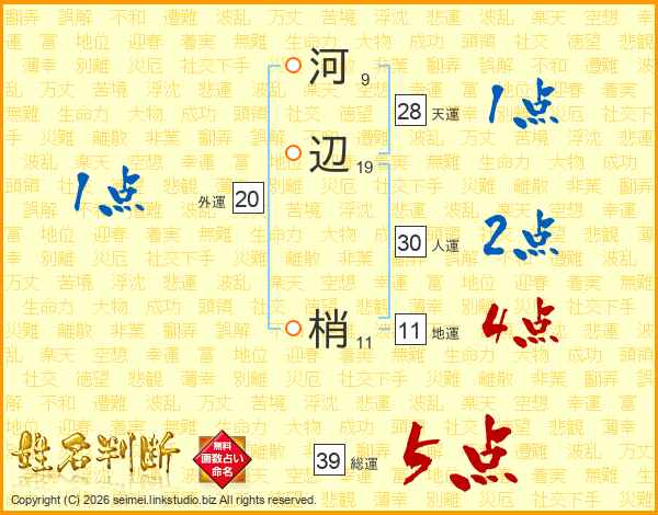 河辺梢さんの総運は39画の5点!
