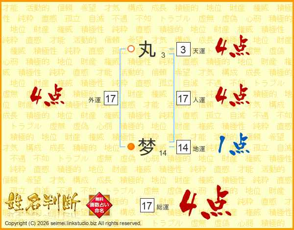 丸梦さんの総運は17画の4点!
