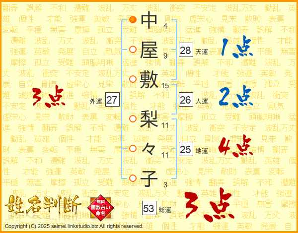 中屋敷梨々子さんの総運は53画の3点!