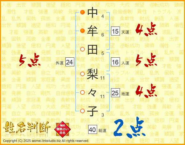 中牟田梨々子さんの総運は40画の2点!