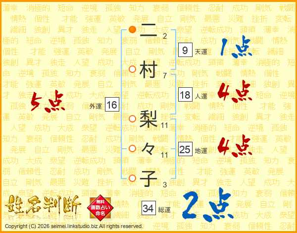 二村梨々子さんの総運は34画の2点!