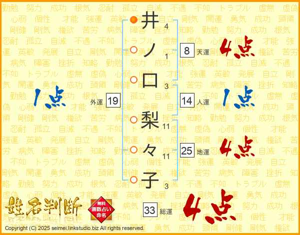 井ノ口梨々子さんの総運は33画の4点!