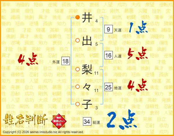 井(4画)出(5画) 梨(11画)々(11画)子(3画)