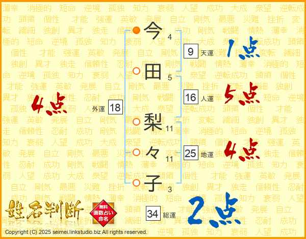 今田梨々子さんの地運は25画の4点!