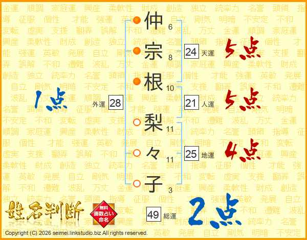 仲宗根梨々子さんの総運は49画の2点!