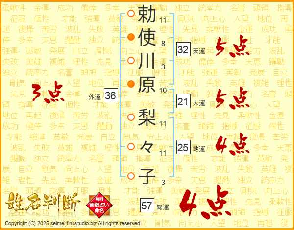 勅使川原梨々子さんの外運は36画の3点!