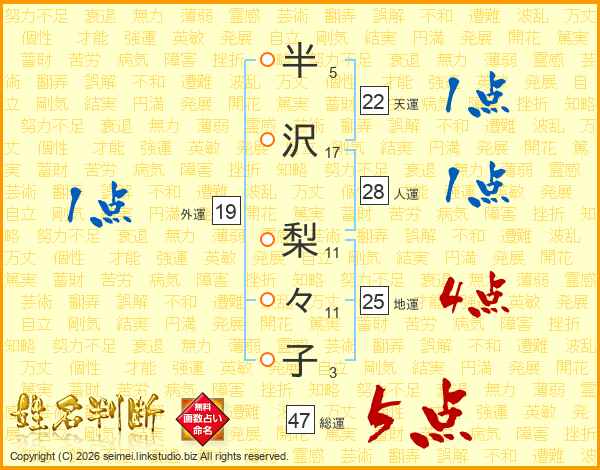 半沢梨々子さんの総運は47画の5点!