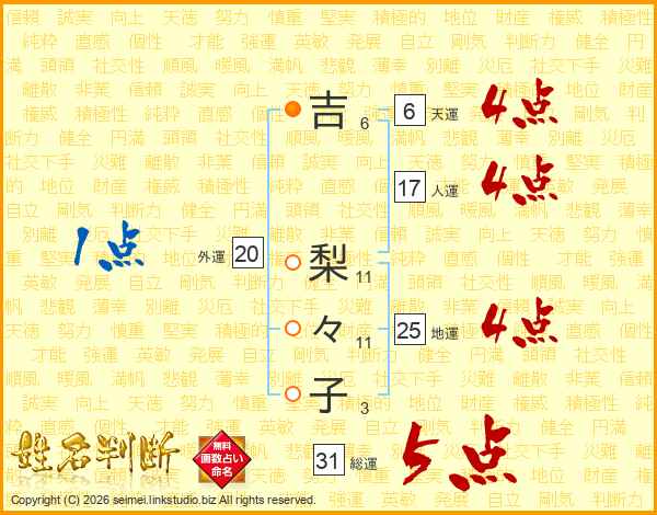 吉梨々子さんの総運は31画の5点!
