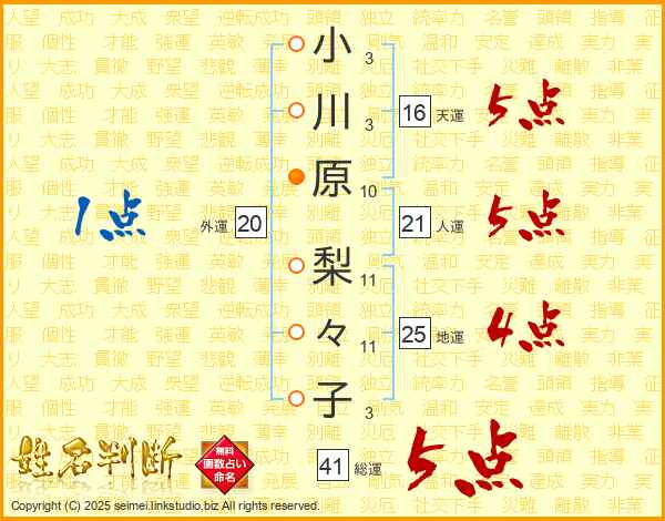 小(3画)川(3画)原(10画) 梨(11画)々(11画)子(3画)