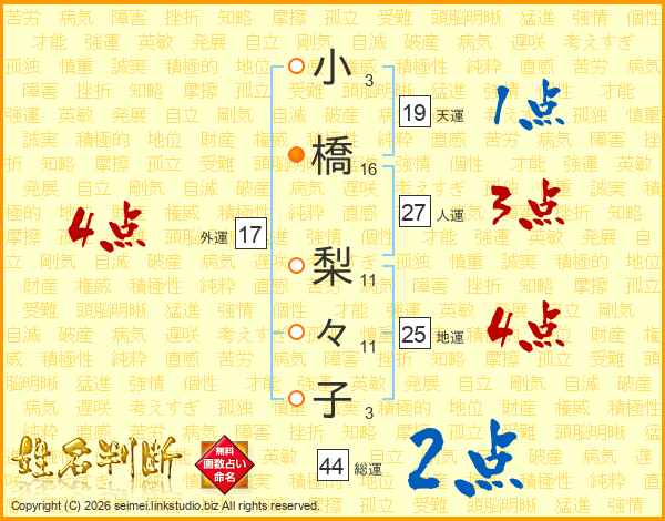 小橋梨々子さんの総運は44画の2点!