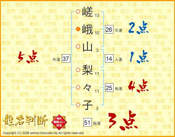 嵯峨山梨々子さんの外運は37画の5点!
