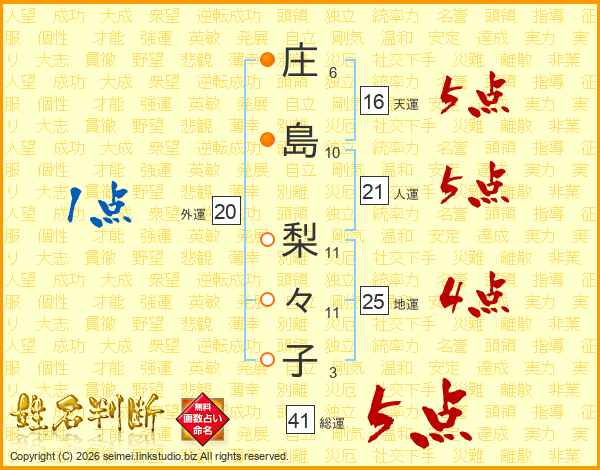 庄島梨々子さんの人運は21画の5点!