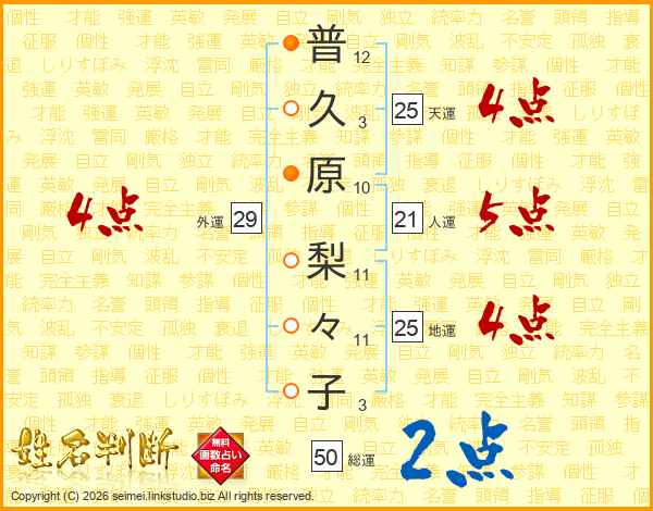 普久原梨々子さんの天運は25画の4点!