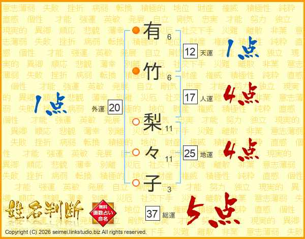 有竹梨々子さんの総運は37画の5点!