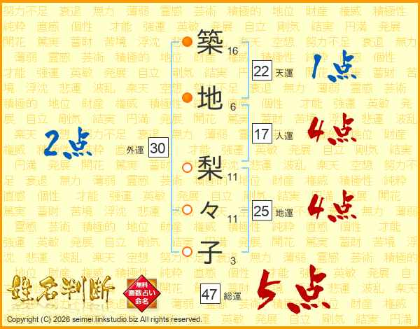 築地梨々子さんの総運は47画の5点!