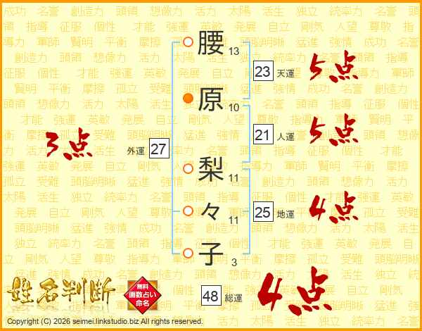 腰原梨々子さんの総運は48画の4点!