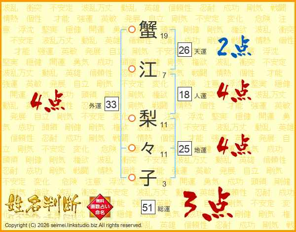 蟹江梨々子さんの総運は51画の3点!