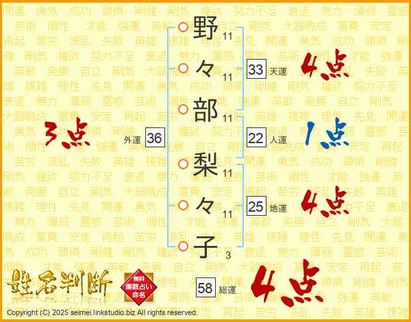 野々部梨々子さんの天運は33画の4点!