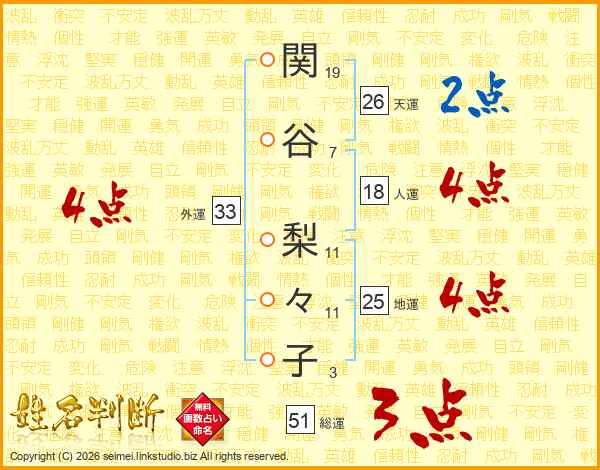 関谷梨々子さんの天運は26画の2点!