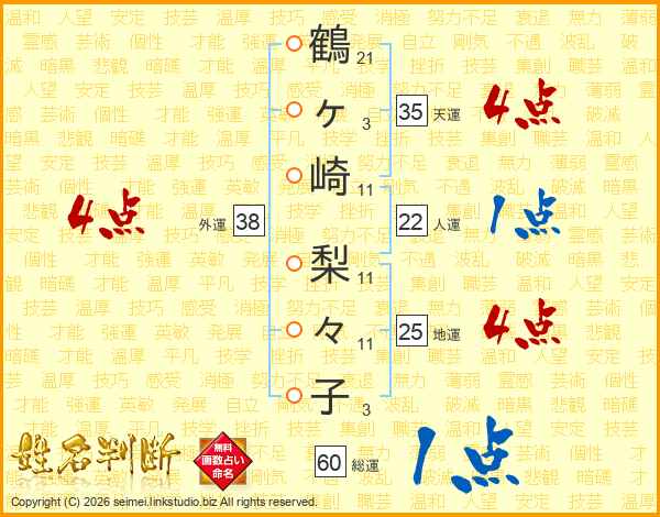 鶴ヶ崎梨々子さんの総運は60画の1点!
