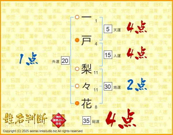 一戸梨々花さんの総運は35画の4点!