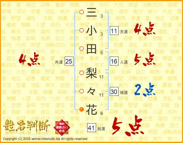 三(3画)小(3画)田(5画) 梨(11画)々(11画)花(8画)
