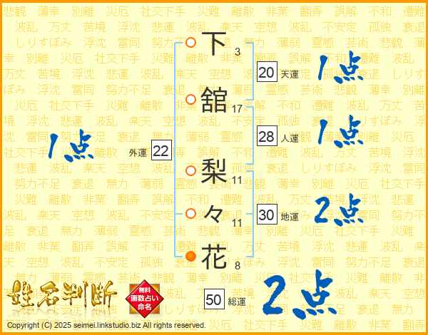 下(3画)舘(17画) 梨(11画)々(11画)花(8画)