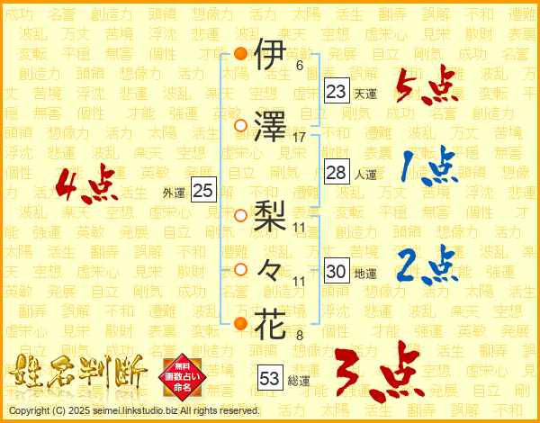 伊澤梨々花さんの天運は23画の5点!