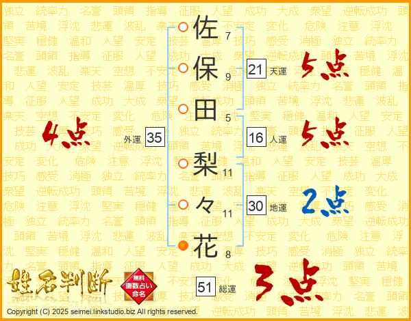 佐保田梨々花さんの外運は35画の4点!