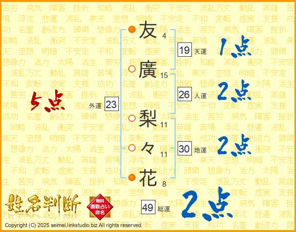 友廣梨々花さんの総運は49画の2点!