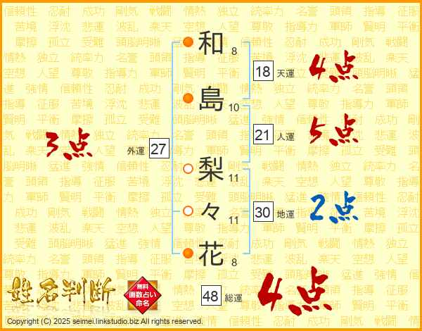 和(8画)島(10画) 梨(11画)々(11画)花(8画)