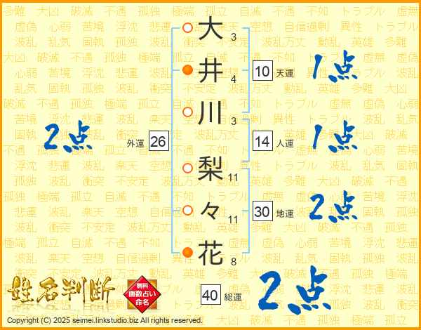 大(3画)井(4画)川(3画) 梨(11画)々(11画)花(8画)
