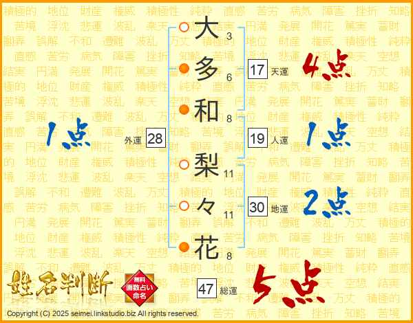 大多和梨々花さんの総運は47画の5点