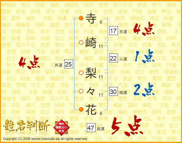 寺崎梨々花さんの総運は47画の5点!