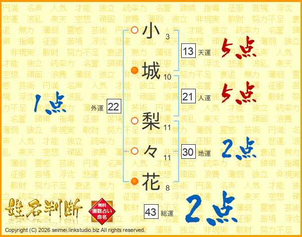 小城梨々花さんの総運は43画の2点!