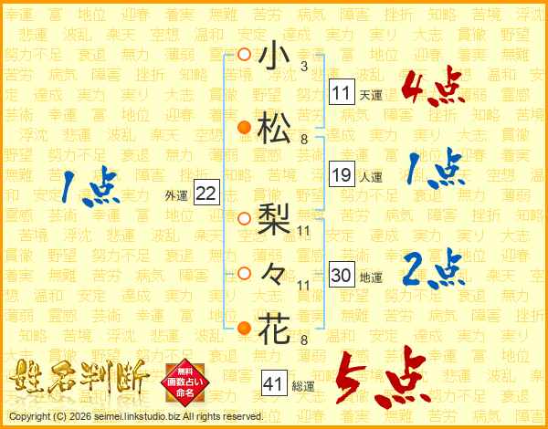 小松梨々花さんの総運は41画の5点!