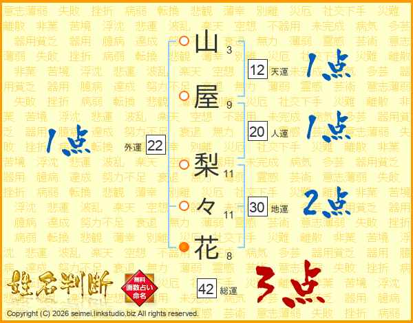 山屋梨々花さんの地運は30画の2点!