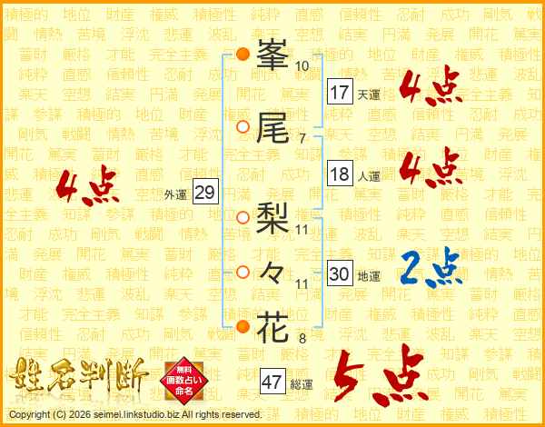 峯尾梨々花さんの総運は47画の5点!