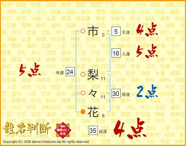 金運 順調 家庭運 興産 柔軟性 財成 創造