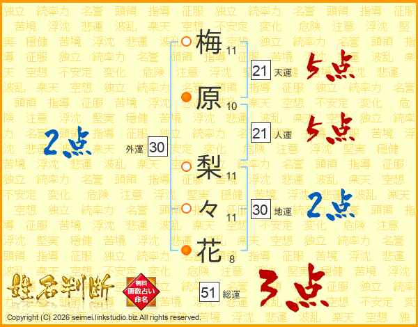 梅原梨々花さんの天運は21画の5点!
