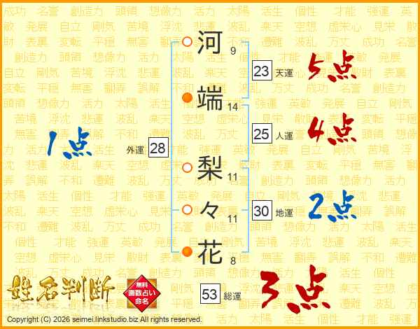 河端梨々花さんの総運は53画の3点!