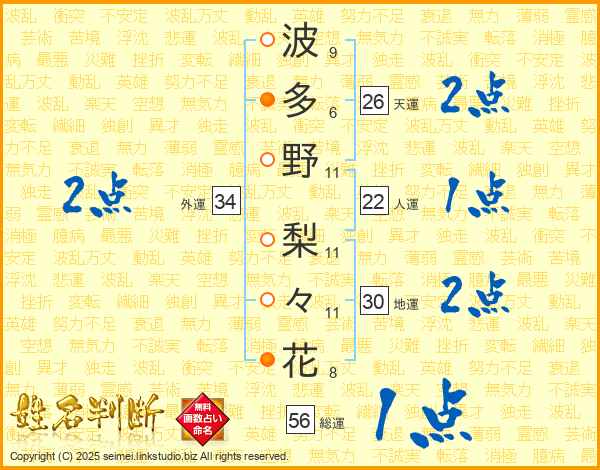 波多野梨々花さんの総運は56画の1点!