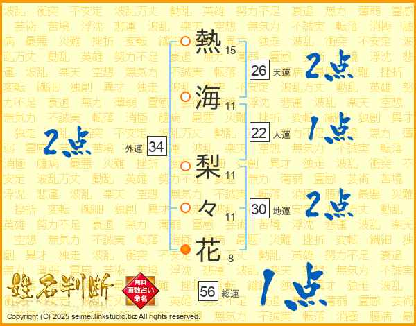 熱海梨々花さんの総運は56画の1点!