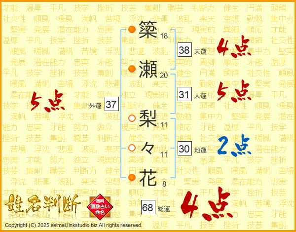 簗瀬梨々花さんの総運は68画の4点!