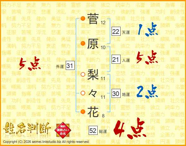 菅原梨々花さんの総運は52画の4点!