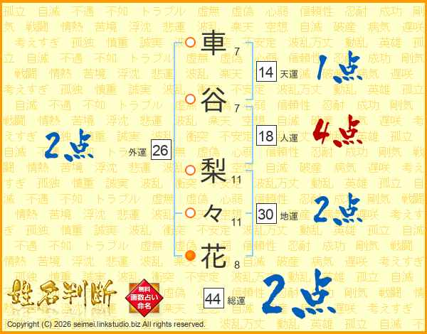 車谷梨々花さんの総運は44画の2点!