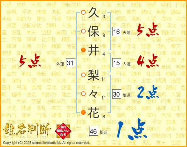 久保井梨々花さんの総運は46画の1点!