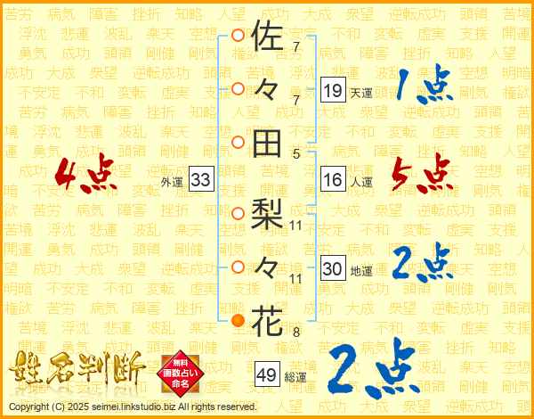佐々田梨々花さんの外運は33画の4点!