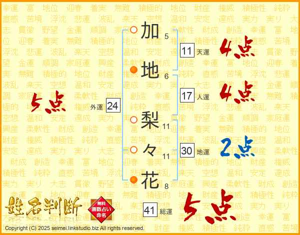 加地梨々花さんの外運は24画の5点!