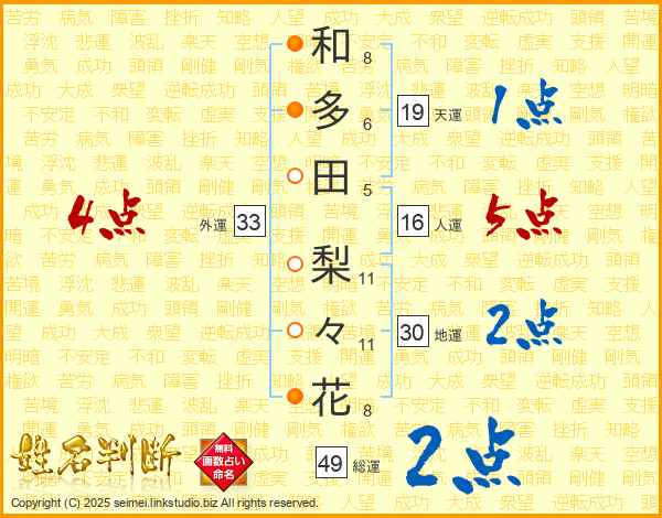 和(8画)多(6画)田(5画) 梨(11画)々(11画)花(8画)